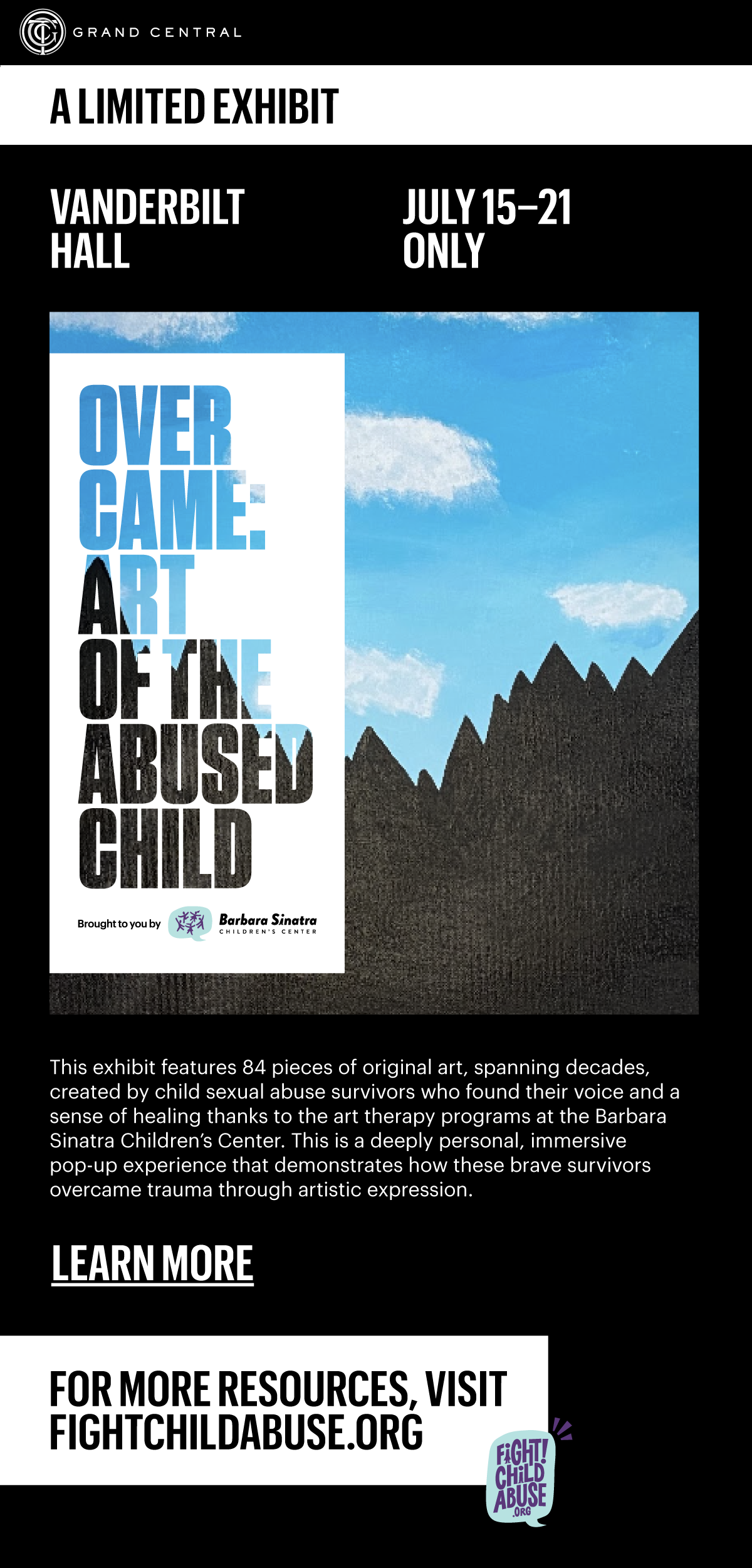 The Overcame Exhibit by The Barbara Sinatra Children’s Center strove to bring awareness and promote counseling for children affected by abuse.